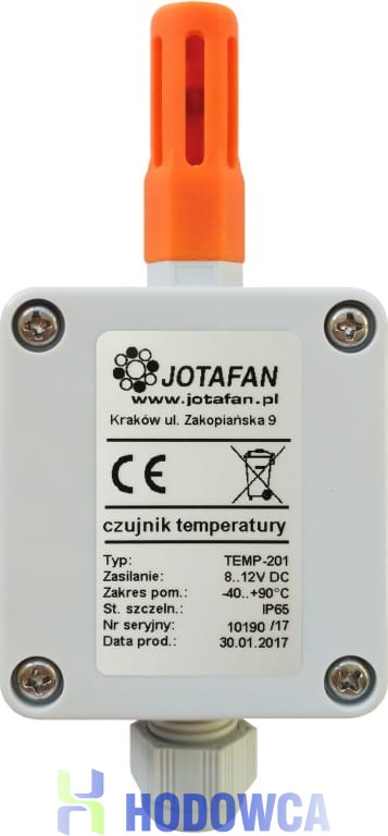 Czujnik TEMP-201 jest urządzeniem do pomiaru temperatury powietrza wykonanym w oparciu o nowoczesny, fabrycznie kalibrowany sensor cyfrowy. Czujnik przystosowany jest do cyfrowej komunikacji z innymi urządzeniami systemu JOTAFAN zastępując stosowane dotychczas czujniki TEMP-01.
