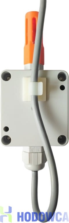 Taki sposób mocowania zwiększa ochronę czujnika przed wilgocią, która mogłaby się dostać do wewnątrz spływając po kablu przez przepust kablowy.