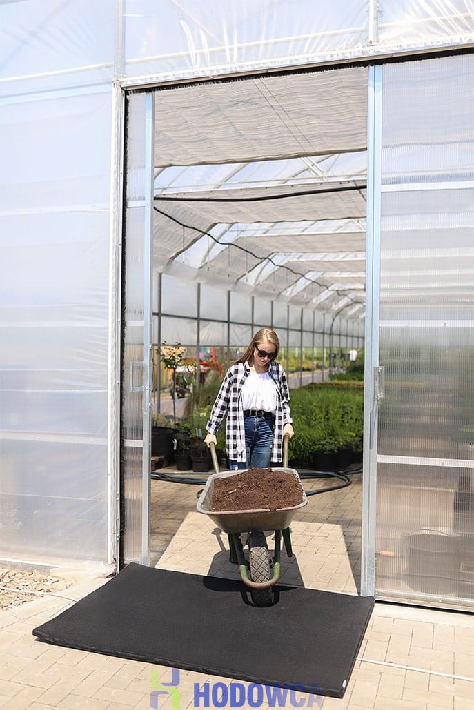 High-quality disinfecting mat of Polish production. Disinfection mats are the basic equipment of disinfecting and sanitary sluices. They allow to effectively limit the introduction of pathogens to production and breeding zones on footwear. Remember to systematically replace or replenish the disinfectant solution. Mats are placed at the door and entrance gates. In order for the mat to fulfill its role, it must be placed directly next to the door so as to minimize the possibility of avoiding it by the staff and visitors to the facility. The universal disinfection mat is ideal as a passage protection. It is especially suitable for crossings with very heavy pedestrian and wheeled traffic. Effectively disinfects the soles of shoes, even with a very deep tread. Mats fastened with a zipper on the side of the mat. Recommended for walkways, pedestrian and bicycle traffic, wheelbarrows, and prams.