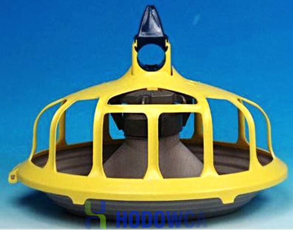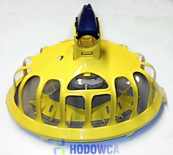 Thanks to the special design of the grill, young birds remain outside the pan from day 10, and the patented HaiKoo bowl with an appropriately bent collar eliminates feed losses from the very first day. Ideal for increasing the stocking density without increasing the number of feed lines (large stocking per feeder). Saving feed! The feed is concentrated in the center of the tray away from the edges (s). The exact setting of the feed level is adapted to the age of the birds. The wings of the feeder prevent the feed from scratching and scattering.